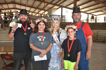 2023 Kolache Eating Contest winners posing with Miss Westfest Grace Watson